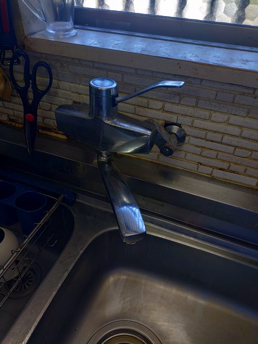 かなり前の物で下げて水を出すタイプだったので、新しい蛇口に交換の話しをさせてもらい、新しい蛇口に交換させてもらいました。