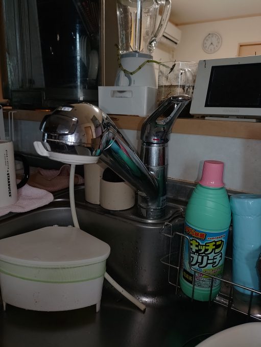 しばらく水漏れしていたみたいでレバーのつけ根とホースから水漏れしていて、シンク下の収納にも水漏れしている状態でした。