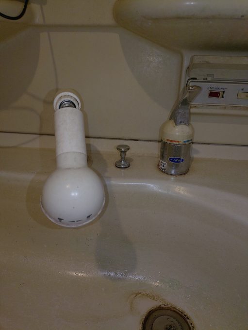 洗面の収納の物を取り出したときに水漏れに気づかれたそうで、点検するとシャワーホースから水漏れしていました。